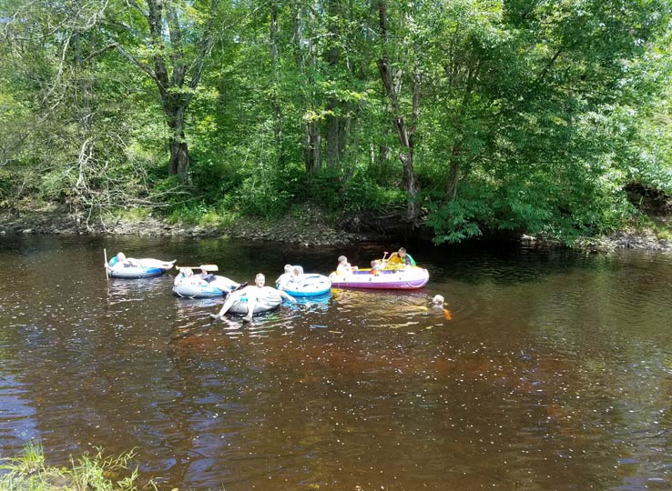 Camp by the sparkling clear Natchaug River at Peppertree Camping in the scenic hills of northeast Connecticut on Rte. 198. Sleep to the sounds of a babbling brook and wake to the birds calling from the Natchaug State Forest. Float down the lazy river from one end of the campground to the other and repeat as many times as you like. Relax, drift as you gaze up through the trees, experience the the thrill as you pass through the little rapids. Be more adventurous and tube further.